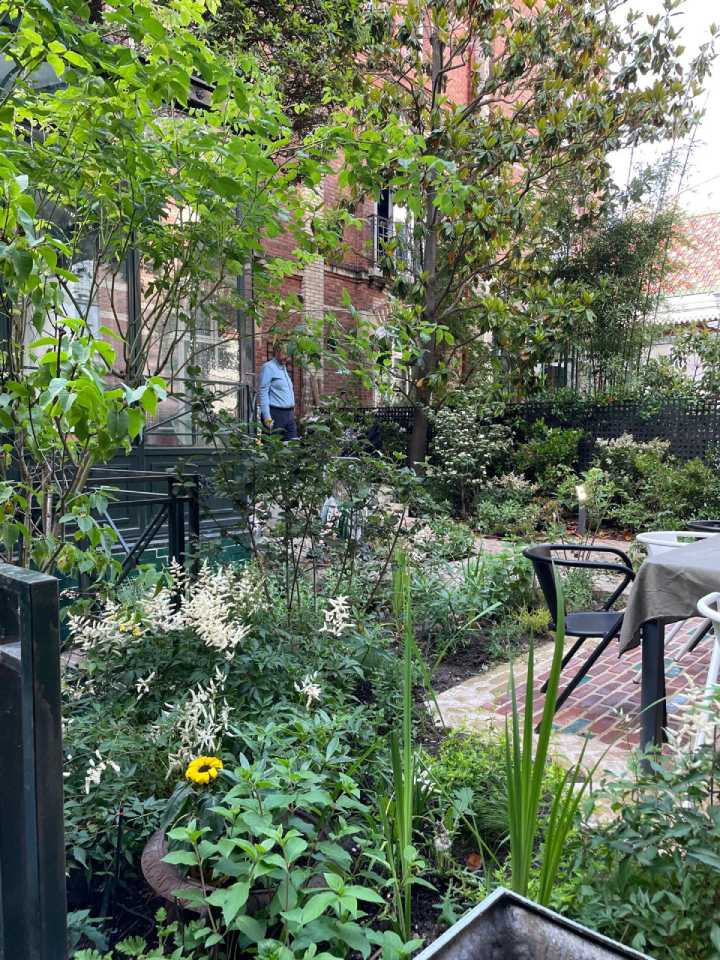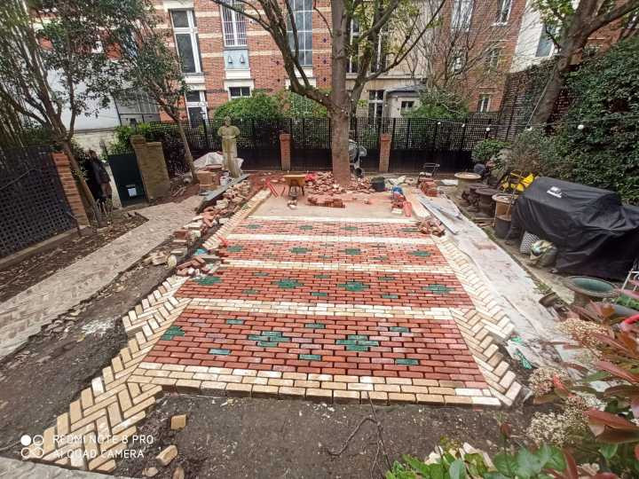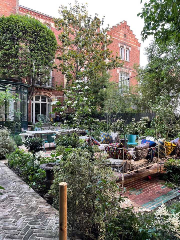 C’est une véritable chambre de verdure en plein Paris que nous avons imaginé pour le compte de nos clients. Celle-ci s’organise comme une pièce de vie avec des cheminements en couloir pour se contourner, se rejoindre, et renforcer l’esprit jardin du « Vu, pas vu » ! Le projet est une surprise à découvrir chaque soir en rentrant et le matin en partant, c’est une bonbonnière de plantes à floraison parfumée, une symphonie de vivaces fleuries… Cette profusion de plante est portée par un tapis de brique lui-même orné de faïence où l’on s’installe désormais sur des banquettes ou à table les douces soirées d’été…