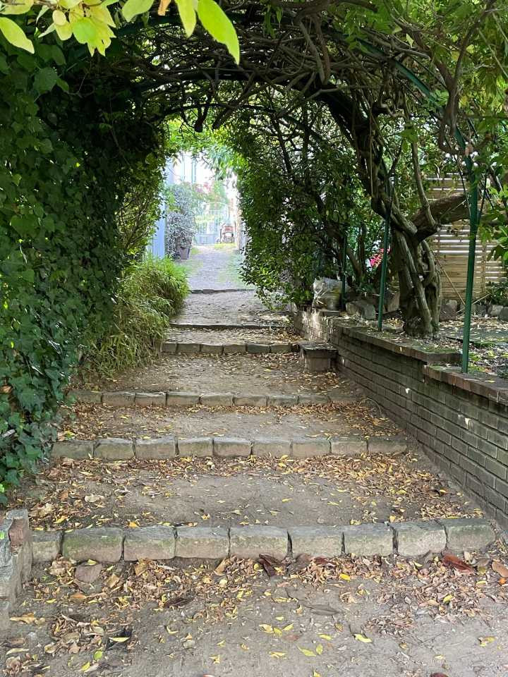 L’aménagement de ce jardin à Colombes consistait à travailler une situation en couloir et en dénivelé, y permettre l’infiltration des eaux de ruissèlements de pluie, tout en jalonnant le cheminement de plans successifs. Le couloir devenait enfin une extension du jardin à parcourir.