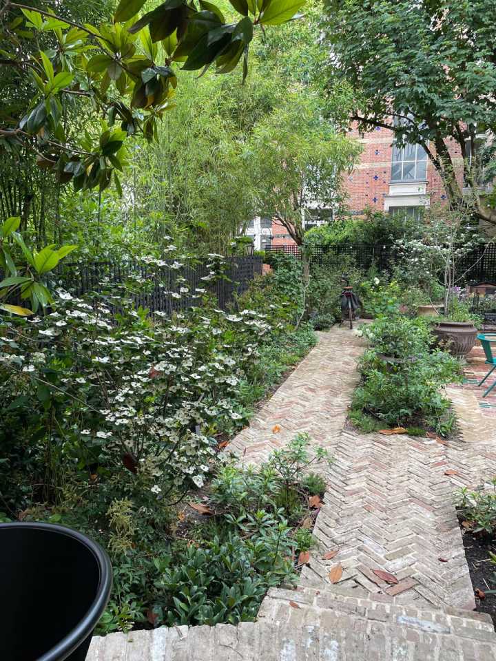 C’est une véritable chambre de verdure en plein Paris que nous avons imaginé pour le compte de nos clients. Celle-ci s’organise comme une pièce de vie avec des cheminements en couloir pour se contourner, se rejoindre, et renforcer l’esprit jardin du « Vu, pas vu » ! Le projet est une surprise à découvrir chaque soir en rentrant et le matin en partant, c’est une bonbonnière de plantes à floraison parfumée, une symphonie de vivaces fleuries… Cette profusion de plante est portée par un tapis de brique lui-même orné de faïence où l’on s’installe désormais sur des banquettes ou à table les douces soirées d’été…